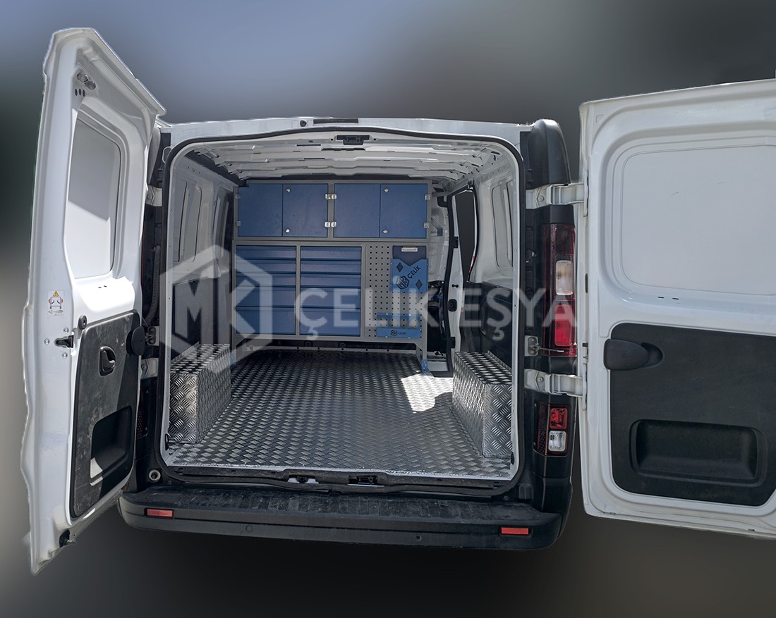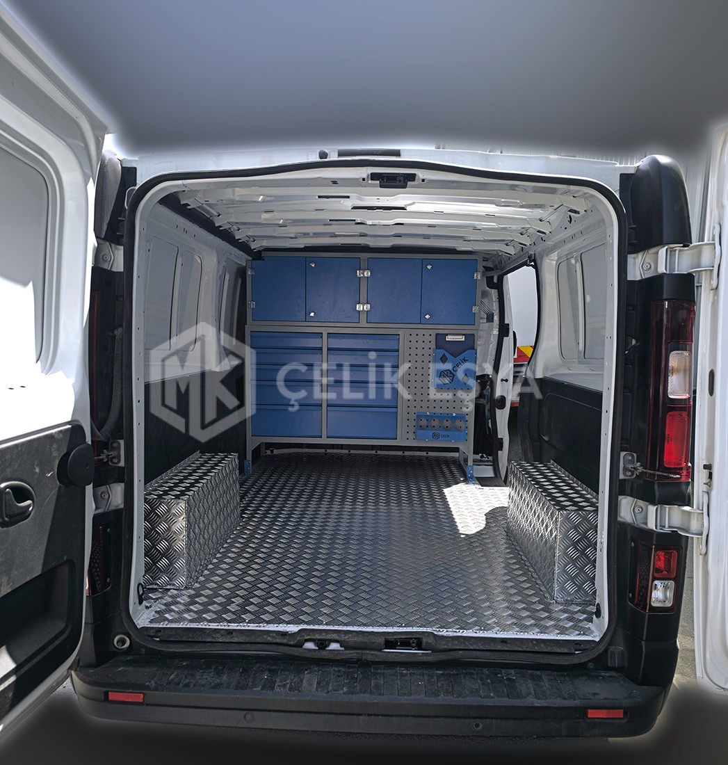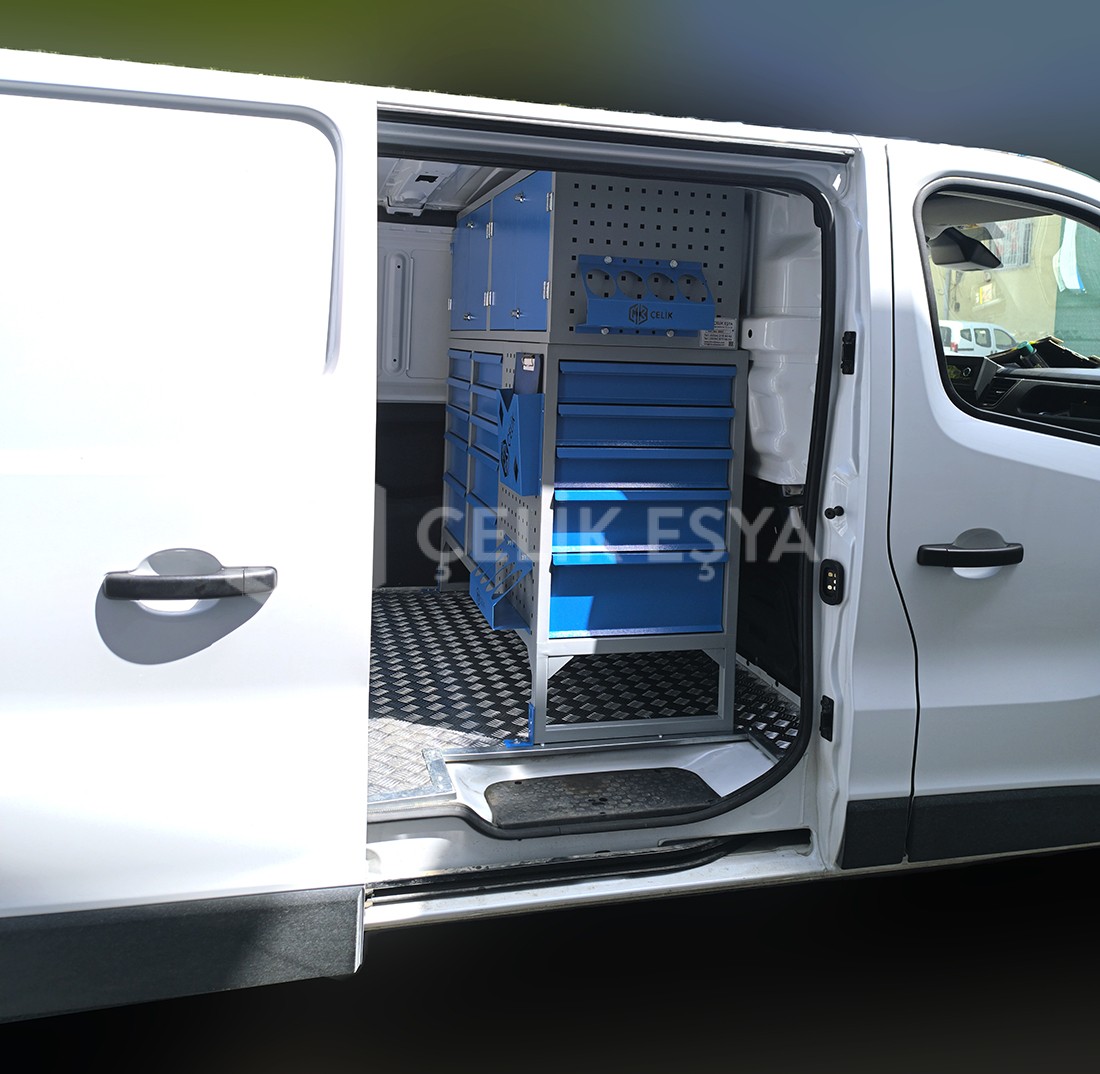 Ford Custom MK-447 Araç içi raf ve dolap sistemlerimiz, birçok farklı sektörde faaliyet gösteren firmaların ihtiyaçlarını göz önünde bulundurarak tasarlanıp üretilmektedir. Özellikle yerinde servis hizmeti veren firmaların bakım aracı ihtiyaçlarını karşılamaktadır. Bu tarz servis ve bakım araçlarının ihtiyaç duyduğu alet ve edevatların derli toplu muhafazası sağlanır. Ayrıca araç içinin fonksiyonel kullanımının yanında görsel olarak da zenginleştirir.