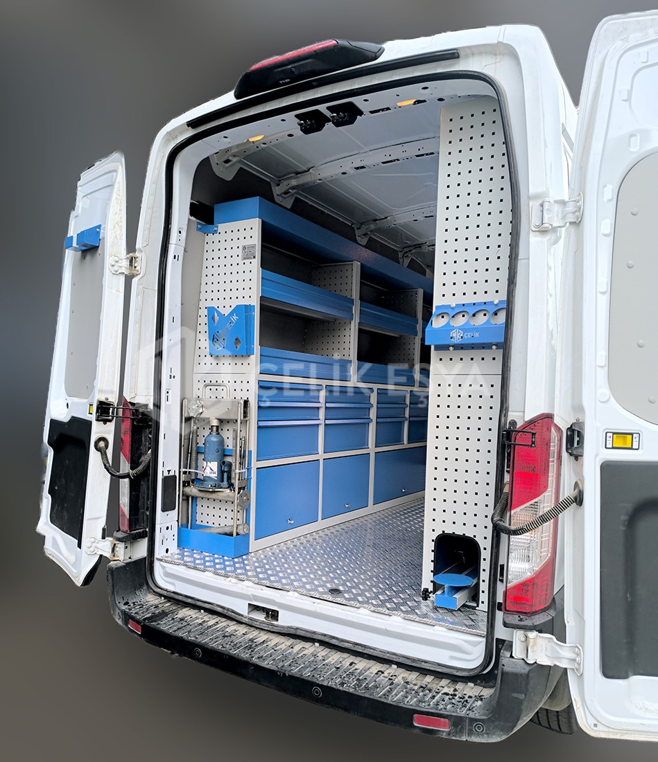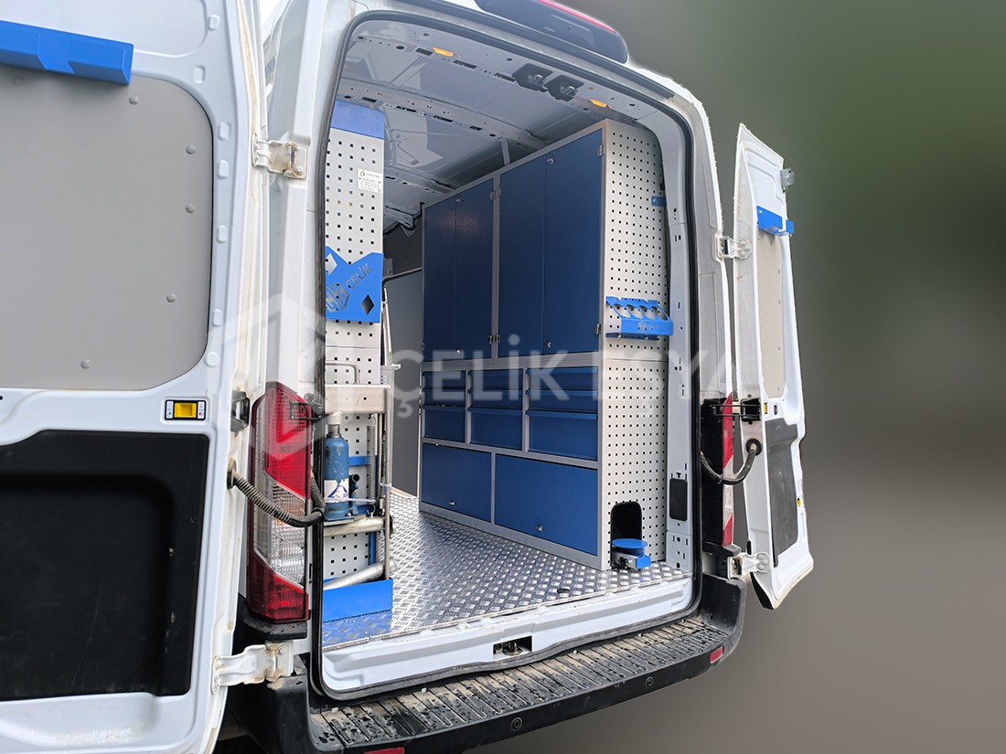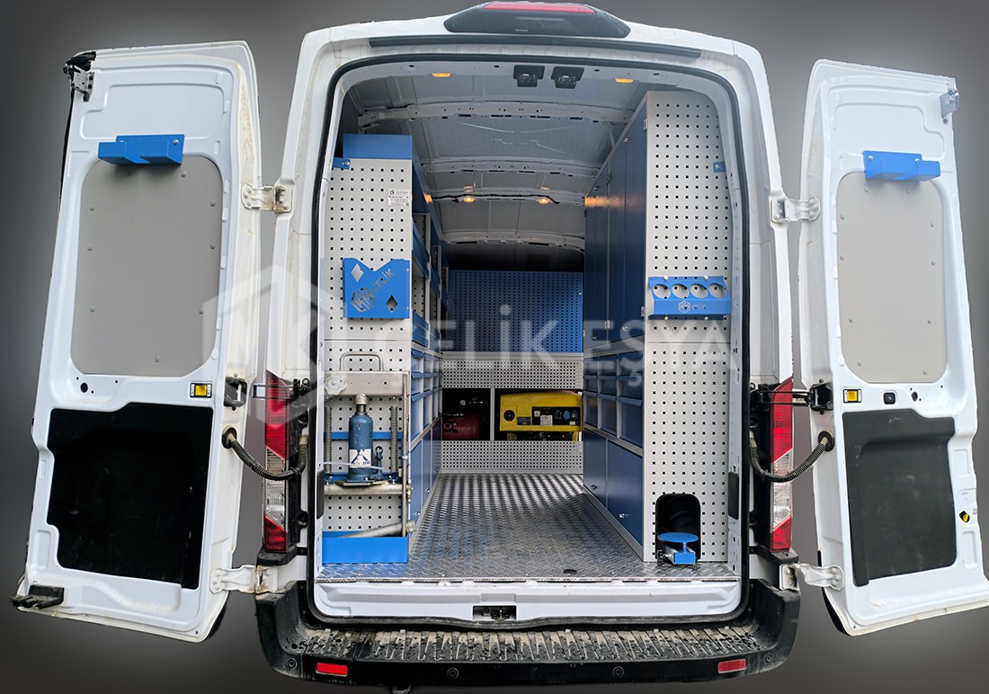 Ford Transit MK-451 Araç içi raf ve dolap sistemlerimiz, birçok farklı sektörde faaliyet gösteren firmaların ihtiyaçlarını göz önünde bulundurarak tasarlanıp üretilmektedir. Özellikle yerinde servis hizmeti veren firmaların bakım aracı ihtiyaçlarını karşılamaktadır. Bu tarz servis ve bakım araçlarının ihtiyaç duyduğu alet ve edevatların derli toplu muhafazası sağlanır. Ayrıca araç içinin fonksiyonel kullanımının yanında görsel olarak da zenginleştirir.